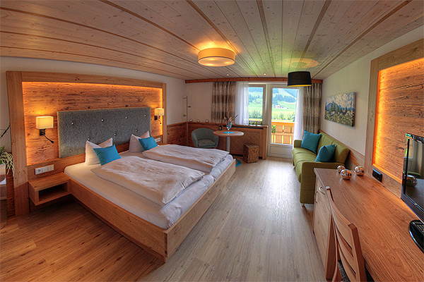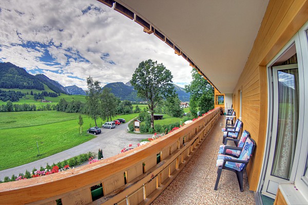 Dusche/WC, Sat-TV, Telefon, Safe, Südbalkon mit herrlichem Blick auf die Tannheimer Berge