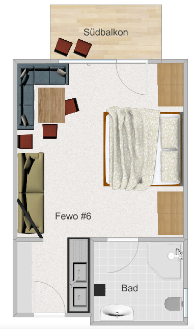 Wohn-Schlafraum mit Sitzecke, Küche, Du/WC, Sat-TV, Mietsafe, Telefon, eigener Südbalkon mit Blick auf die Tannheimer Berge